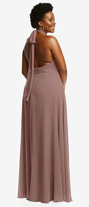 Shirred Halter Chiffon Maxi Dress with Back Sash-Tie Closure in sienna