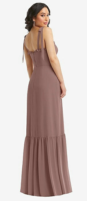 Plunge Neckline Bow Shoulder Empire Waist Chiffon Maxi Dress in sienna