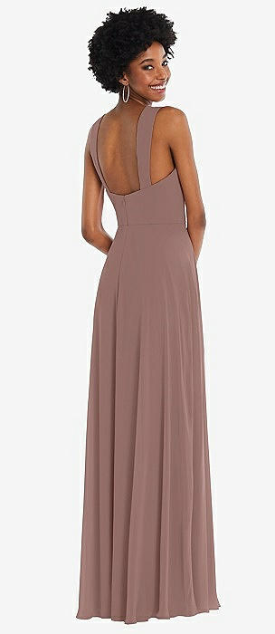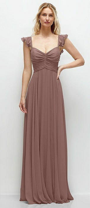 Convertible Ruffle Strap Chiffon Maxi Dress with Full Circle Skirt in sienna