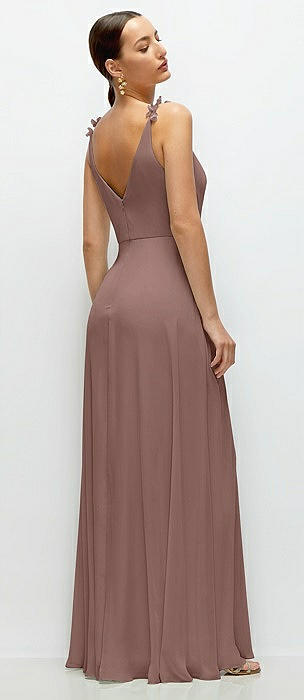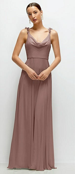 Cowl Neck Chiffon Maxi Dress with Hand-Worked Petal Straps in sienna