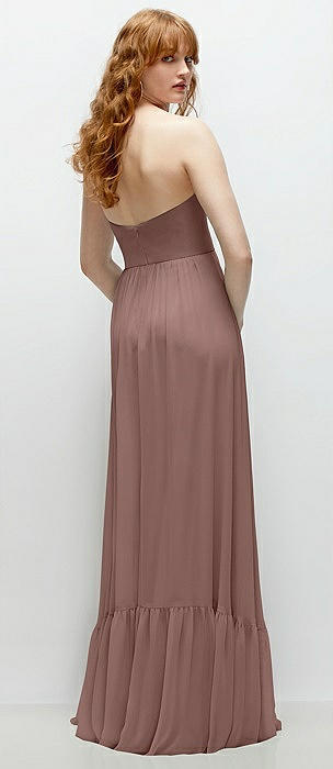 Ruffle Strap Chiffon Bustier Maxi Dress with Ruffle Hem A-Line Skirt in sienna