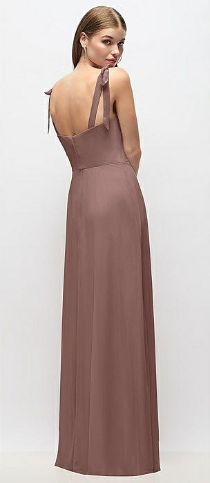 Tie-Shoulder Chiffon Maxi Dress with Front Slit in sienna
