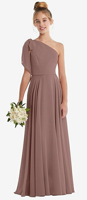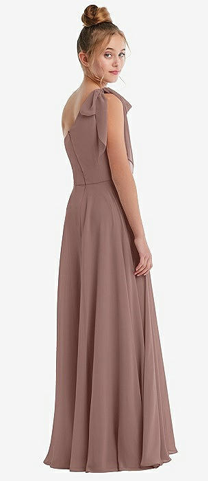 One-Shoulder Scarf Bow Chiffon Junior Bridesmaid Dress in sienna