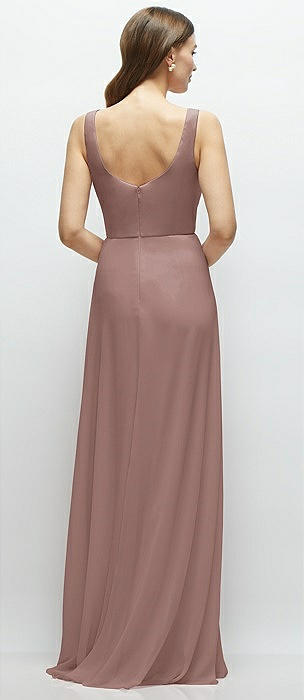 Square Neck Chiffon Maxi Dress with Circle Skirt in sienna