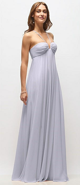 Empire Waist Chiffon Halter Maxi Dress with Convertible Spaghetti Straps in silver dove
