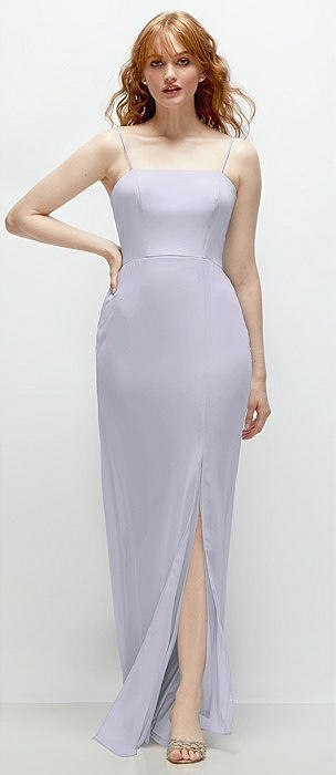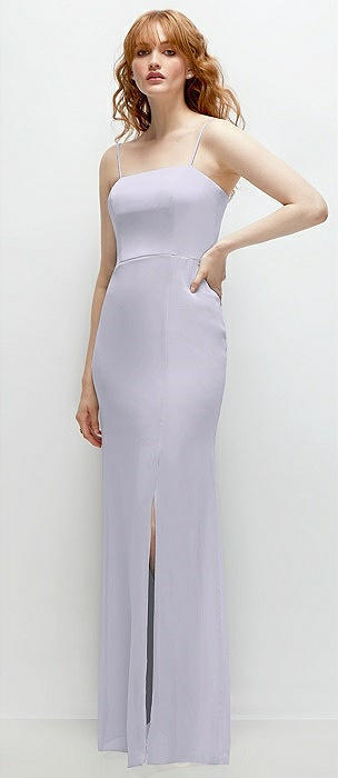 Tie-Back Cutout Trumpet Gown with Front Slit in silver dove