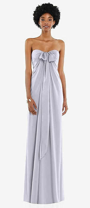 Draped Satin Grecian Column Gown with Convertible Straps in silver dove