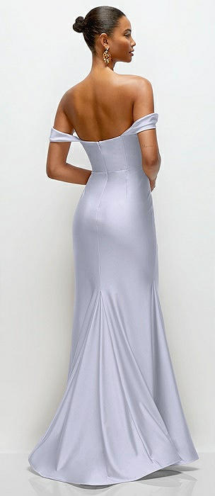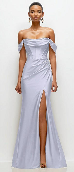 Off-the-Shoulder Corset Stretch Satin Mermaid Dress with Slight Train in silver dove