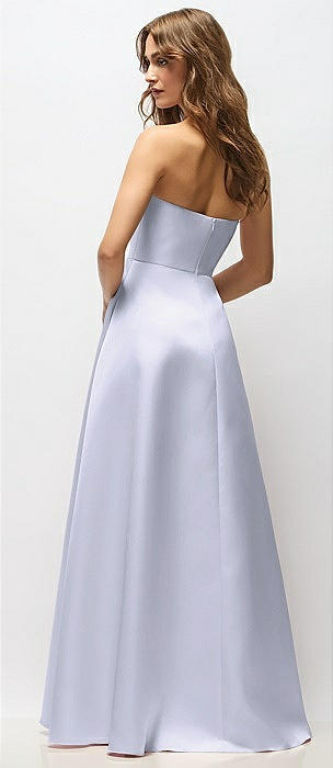 Strapless Twist Cuff Neck Satin Maxi Dress with Basque-Waist & Full Skirt in silver dove