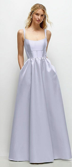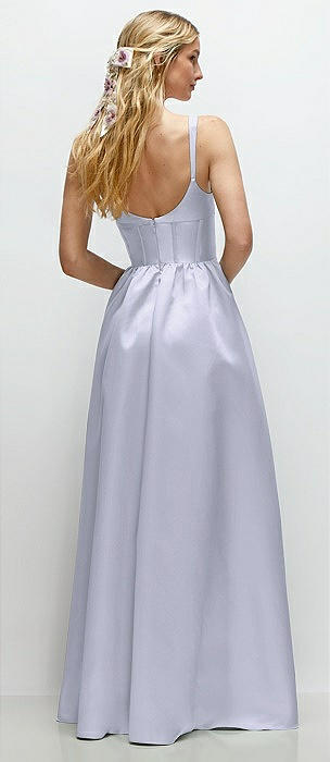 Scoop Neck Inset Corset Satin Maxi Dress with Pockets in silver dove