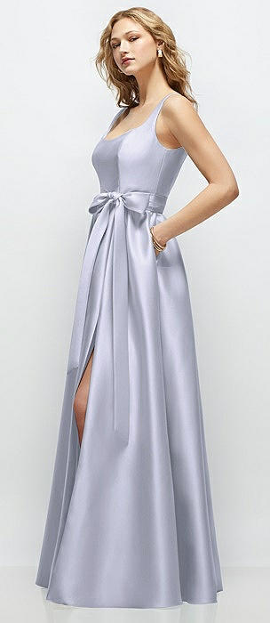 Scoop Neck Drop Basque Skirt Satin Maxi Dress with Pockets in silver dove