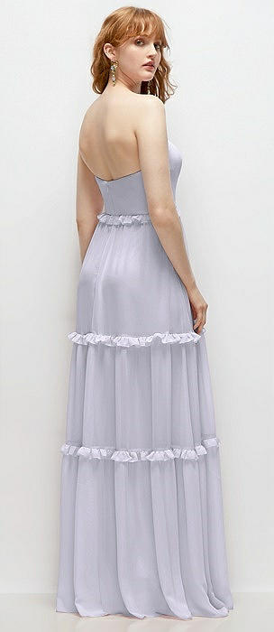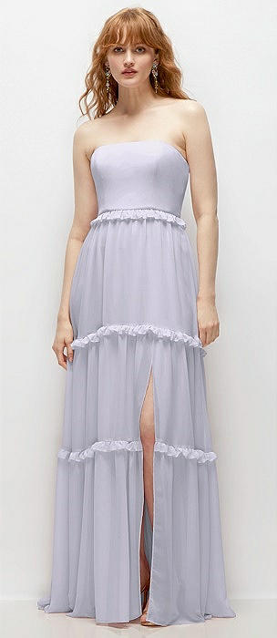 Strapless Chiffon Maxi Dress with Tiered Micro Ruffle Full Skirt in silver dove