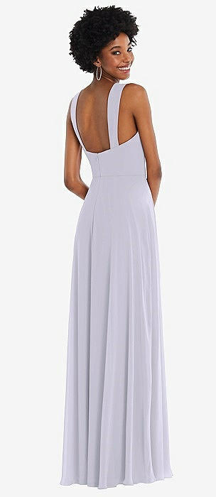 Open Neckline Cutout Satin Twill A-Line Gown with Pockets in silver dove
