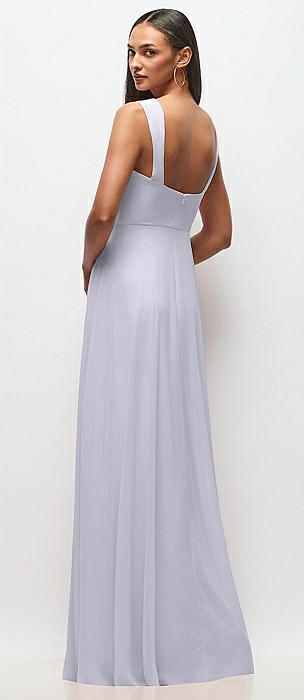 Convertible Ruffle Strap Chiffon Maxi Dress with Full Circle Skirt in silver dove