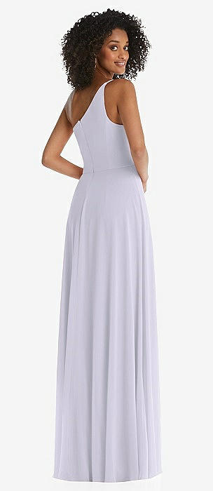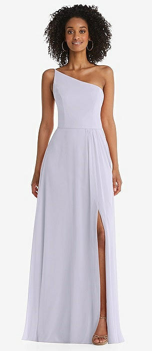 One-Shoulder Chiffon Maxi Dress with Shirred Front Slit in silver dove