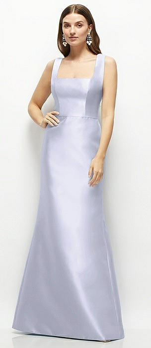 Satin Square Neck Fit and Flare Maxi Dress in silver dove