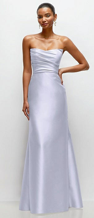 Strapless Cat-Eye Draped Bodice Satin Tumpet Dress in silver dove