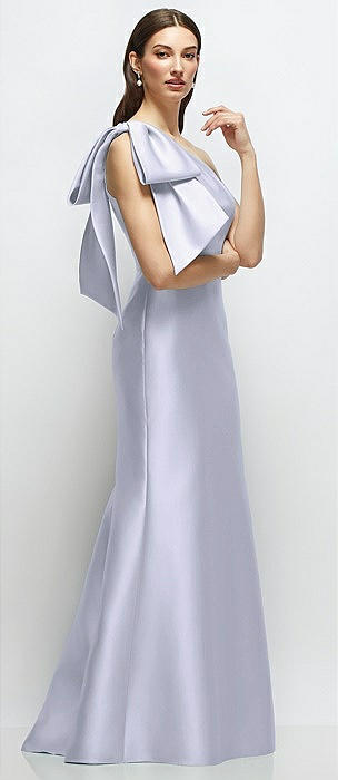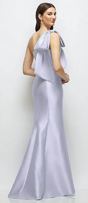 Bow One-Shoulder Satin Trumpet Gown in silver dove