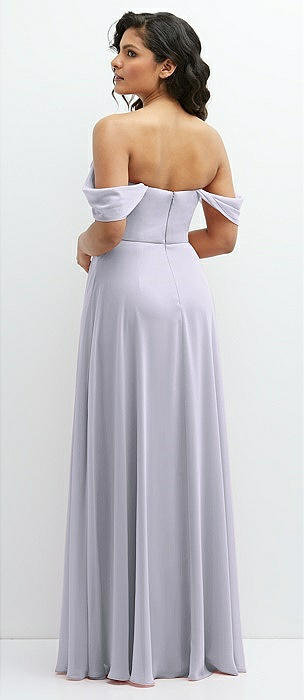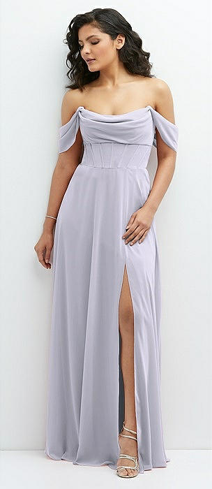 Chiffon Corset Maxi Dress with Removable Off-the-Shoulder Swags in silver dove