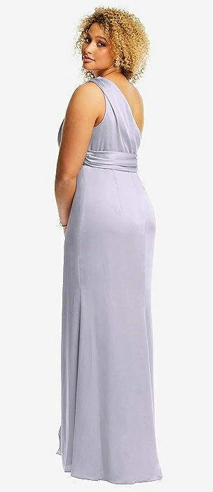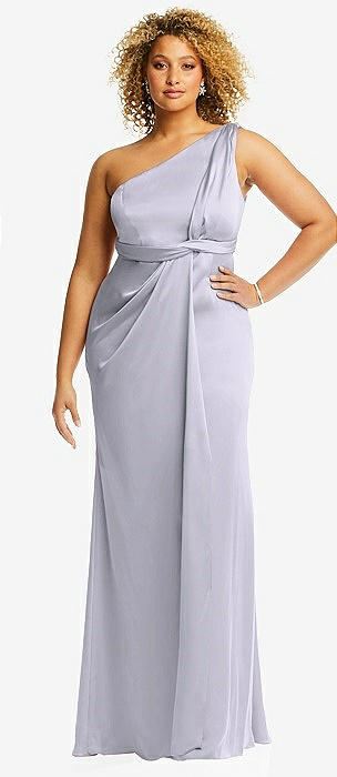 One-Shoulder Draped Twist Empire Waist Trumpet Gown