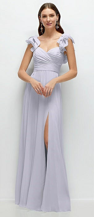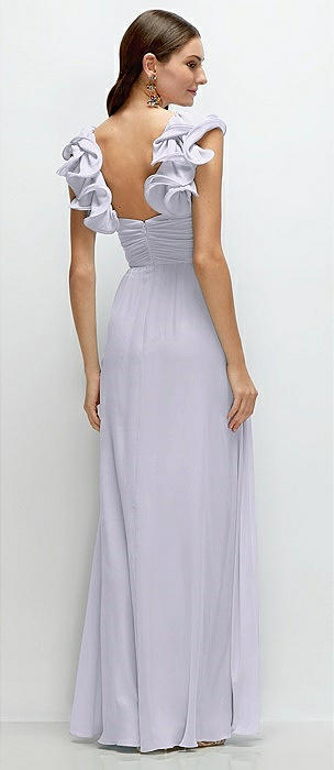 Dramatic Ruffle Edge Strap Chiffon Maxi Dress in silver dove