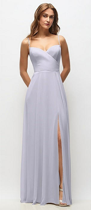 Wrap Bodice Chiffon Maxi Dress with Adjustable Spaghetti Straps in silver dove