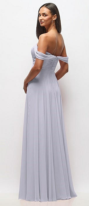 Off-the-Shoulder Basque Corset Chiffon Maxi Dress in silver dove
