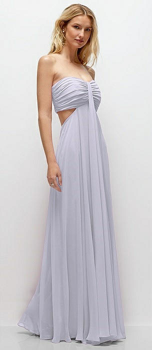 Strapless Empire Waist Cutout Maxi Dress with Covered Button Detail