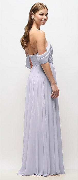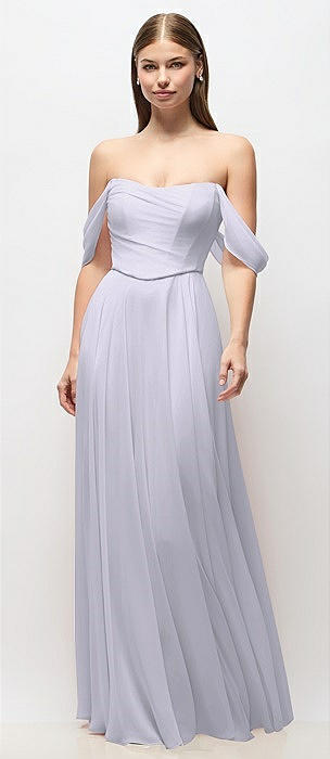 Off-the-Shoulder Basque Corset Chiffon Maxi Dress in silver dove