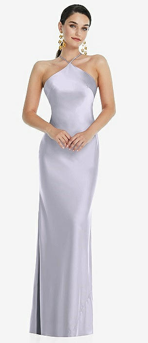 Draped Twist Halter Tie-Back Trumpet Gown in silver dove