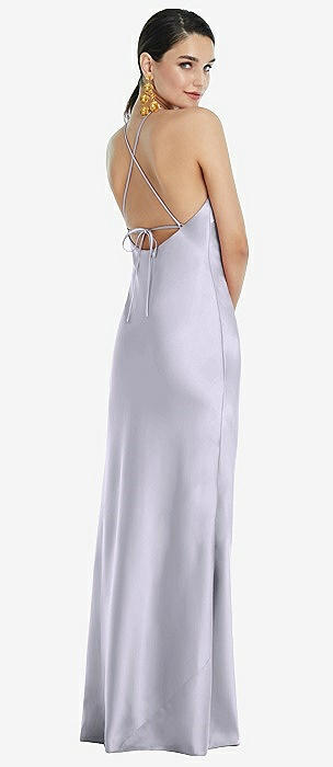 Diamond Halter Bias Maxi Slip Dress with Convertible Straps in silver dove