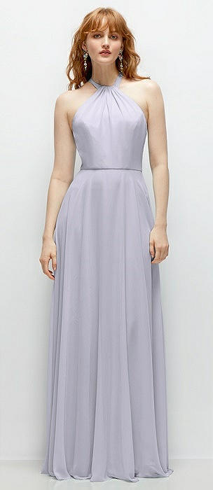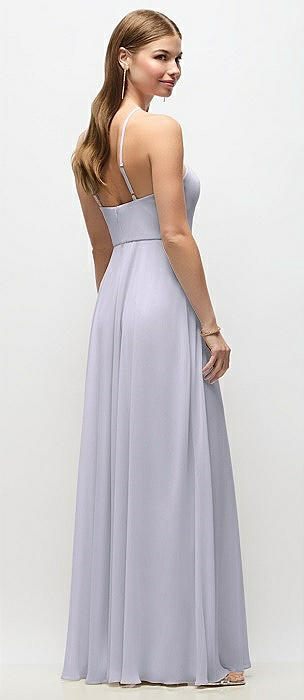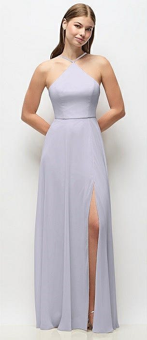 High-Neck Halter Chiffon Maxi Dress with Adjustable Spaghetti Straps in silver dove