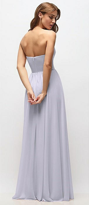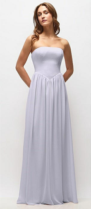 Strapless Basque Drop Waist Chiffon Maxi Dress with Shirred Skirt in silver dove