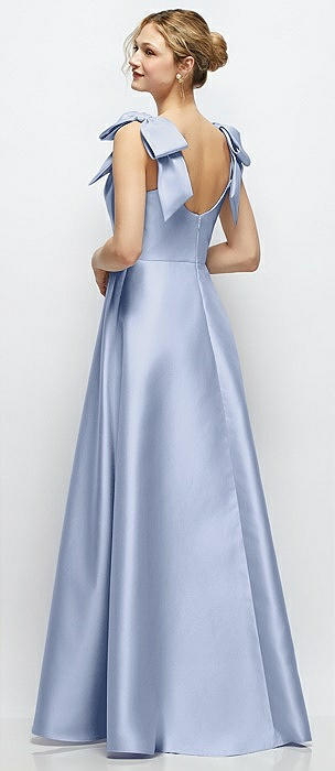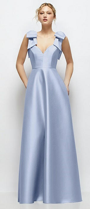 Deep V-Neck Satin Ball Gown with Shoulder Bows in sky blue