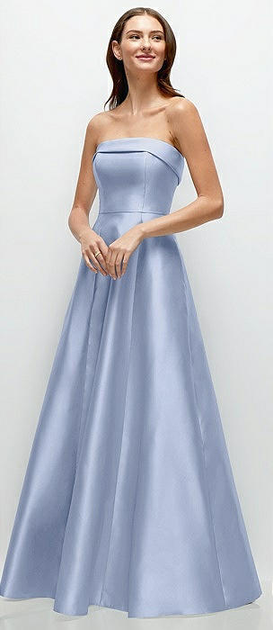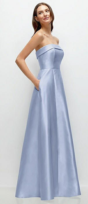 Strapless Bias Cuff Bodice Satin Gown with Pockets in sky blue