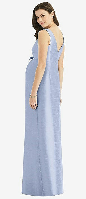 Sleeveless Satin Twill Maternity Dress in sky blue