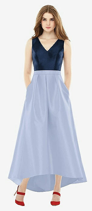 Sleeveless Pleated Skirt High Low Dress with Pockets in sky blue