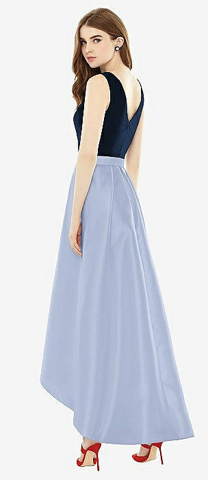 Bateau Neck Satin High Low Cocktail Dress in sky blue