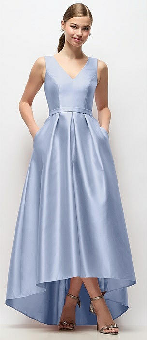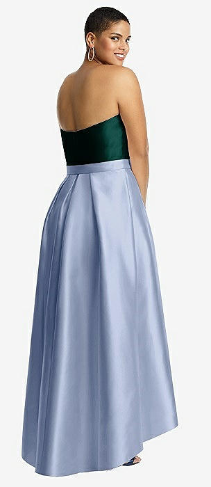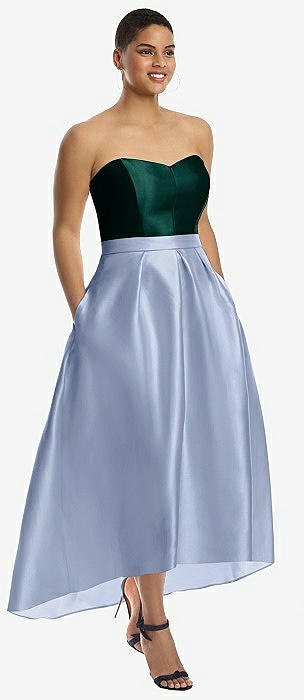 Strapless Satin High Low Dress with Pockets in sky blue