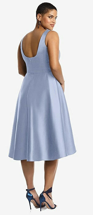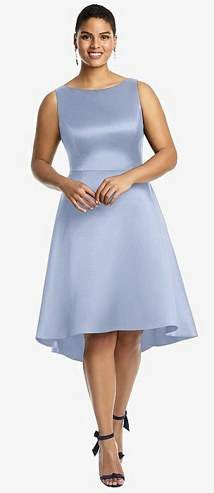 Bateau Neck Satin High Low Cocktail Dress in sky blue