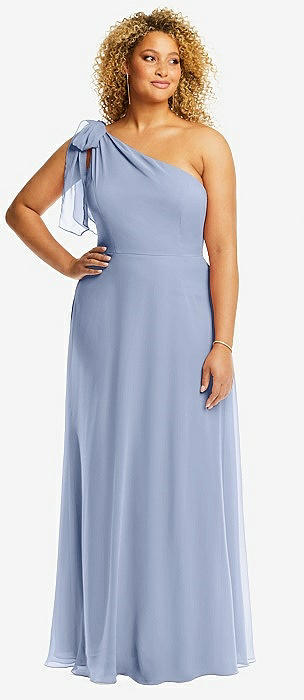 Chiffon One-Shoulder Maxi Dress with Circle Skirt in sky blue