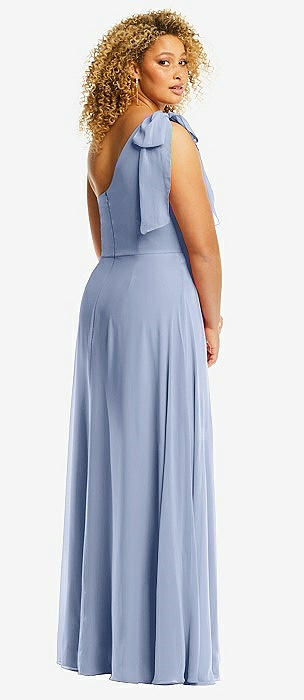 Draped One-Shoulder Maxi Dress with Scarf Bow in sky blue