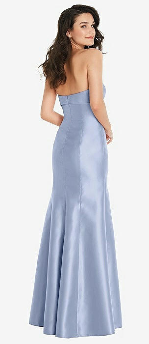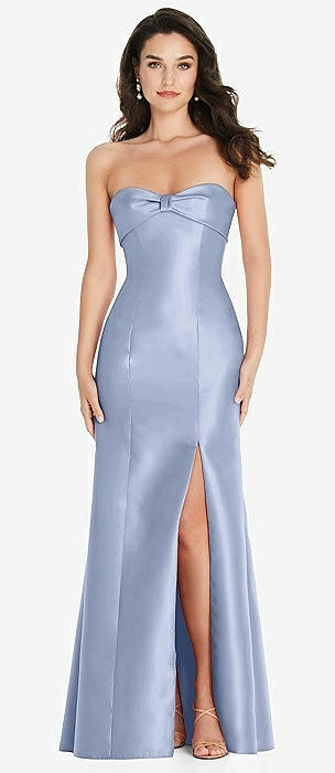 Strapless Satin Gown with Draped Front Slit and Pockets in sky blue