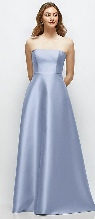 Strapless Bias Cuff Bodice Satin Gown with Pockets in sky blue