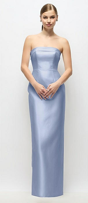 Strapless Cuff Satin Maxi Dress with Column Skirt & Back Bow in sky blue