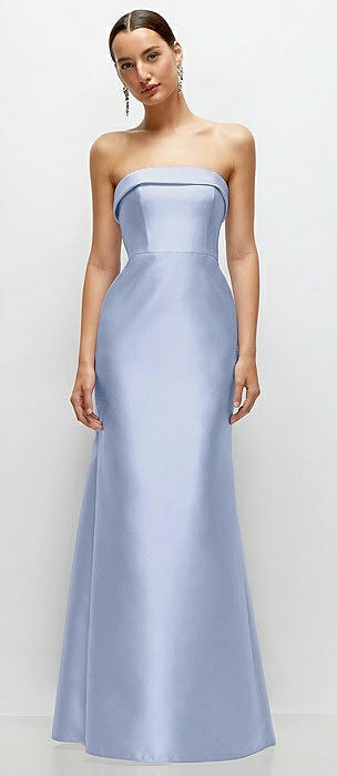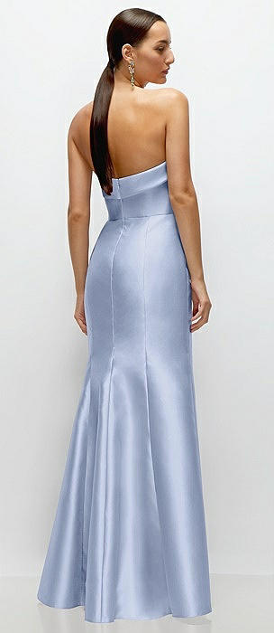 Strapless Cuff Neckline Satin Trumpet Gown in sky blue