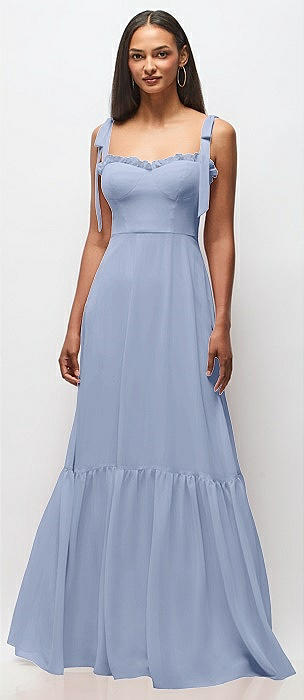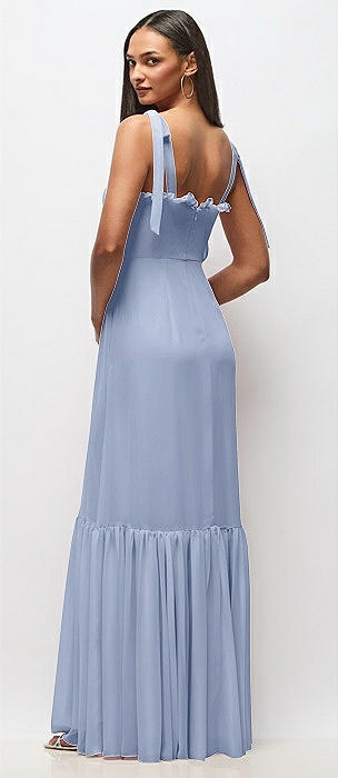 Ruffle Strap Chiffon Bustier Maxi Dress with Ruffle Hem A-Line Skirt in sky blue