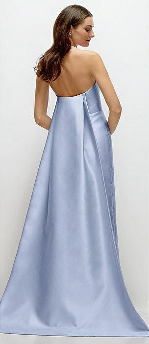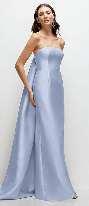 Strapless Satin Column Dress with Removeable Watteau Train in sky blue