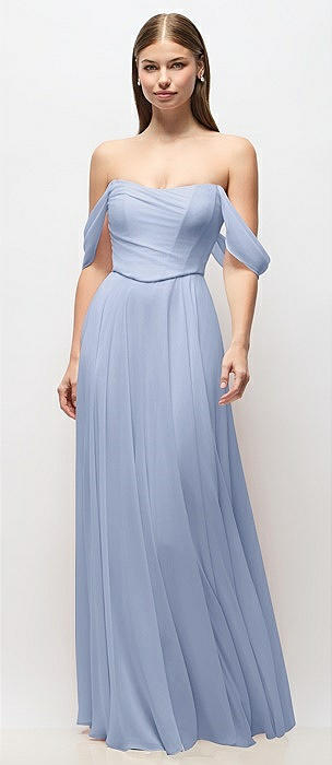 Chiffon Corset Maxi Dress with Removable Off-the-Shoulder Swags in sky blue