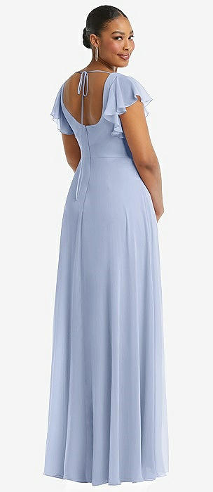 V-Neck Full Skirt Satin Maxi Dress in sky blue